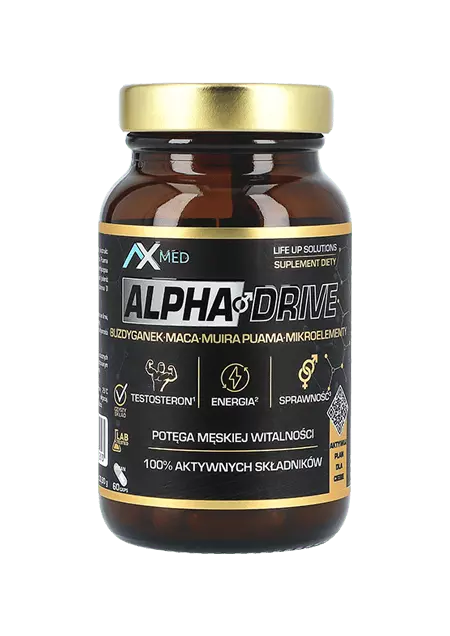 - ALPHA DRIVE – buzdyganek, maca, muira puama, mikroelementy, wzmacnia męską energię i witalność. Ma pozytywny wpływ na poprawę potencji oraz utrzymuje optymalny poziom testosteronu.